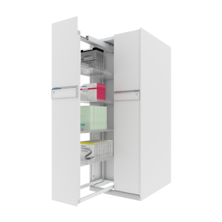 Correcto almacenamiento de stent en bandejas graduables que permiten la fácil visualización de
